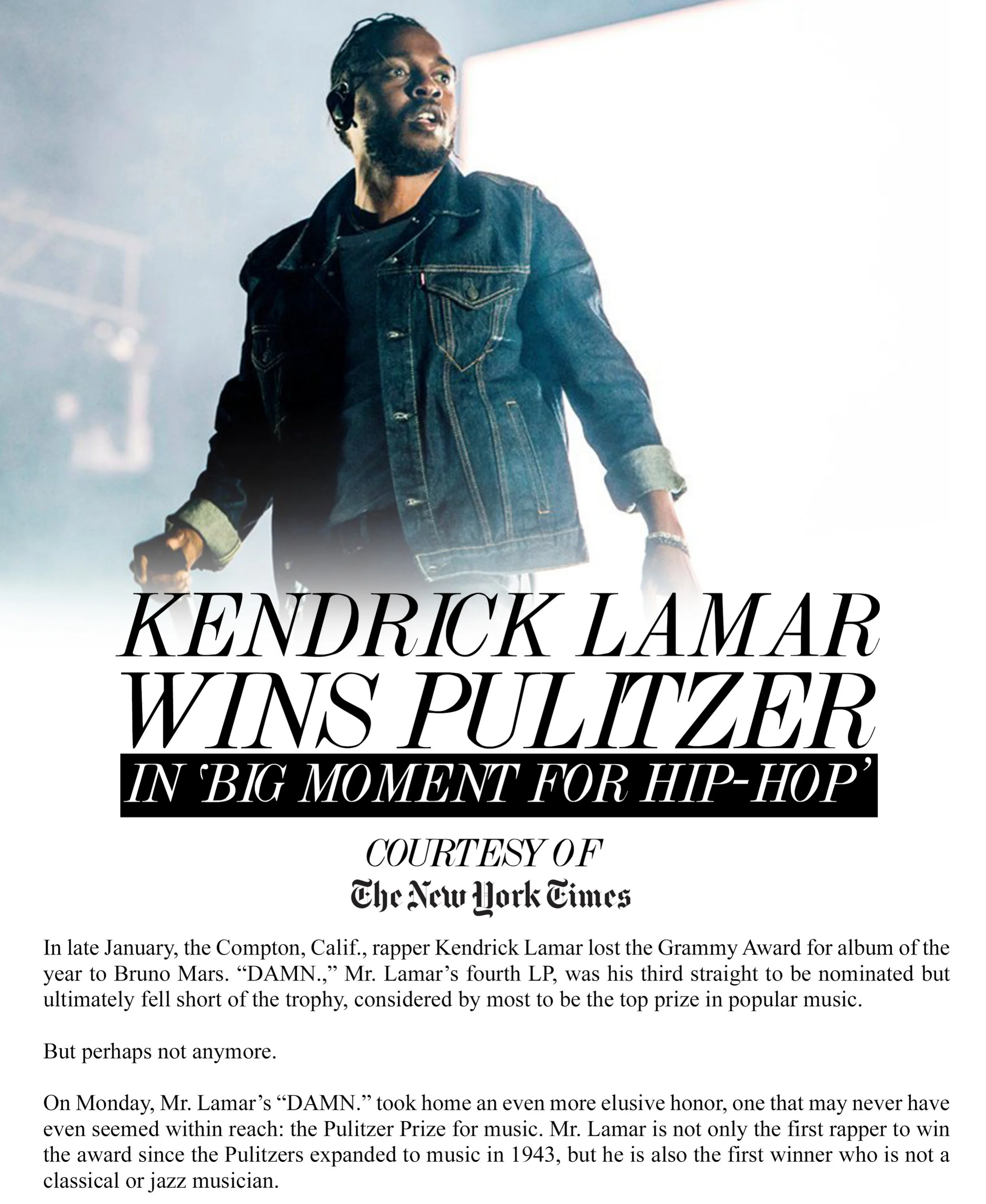 Kendrick Lamar Wins Pulitzer Prize CATCH Prep Charter High SchoolApril 17, 2018 Facebook0 Twitter Tumblr 0 Likes